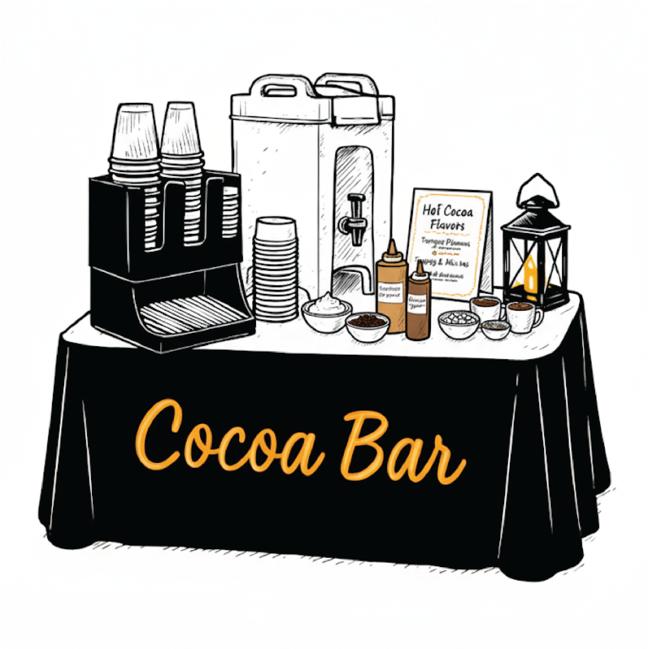 We do offer a hot cocoa bar as an optional add-on, it’s a favorite for both kids and adults.